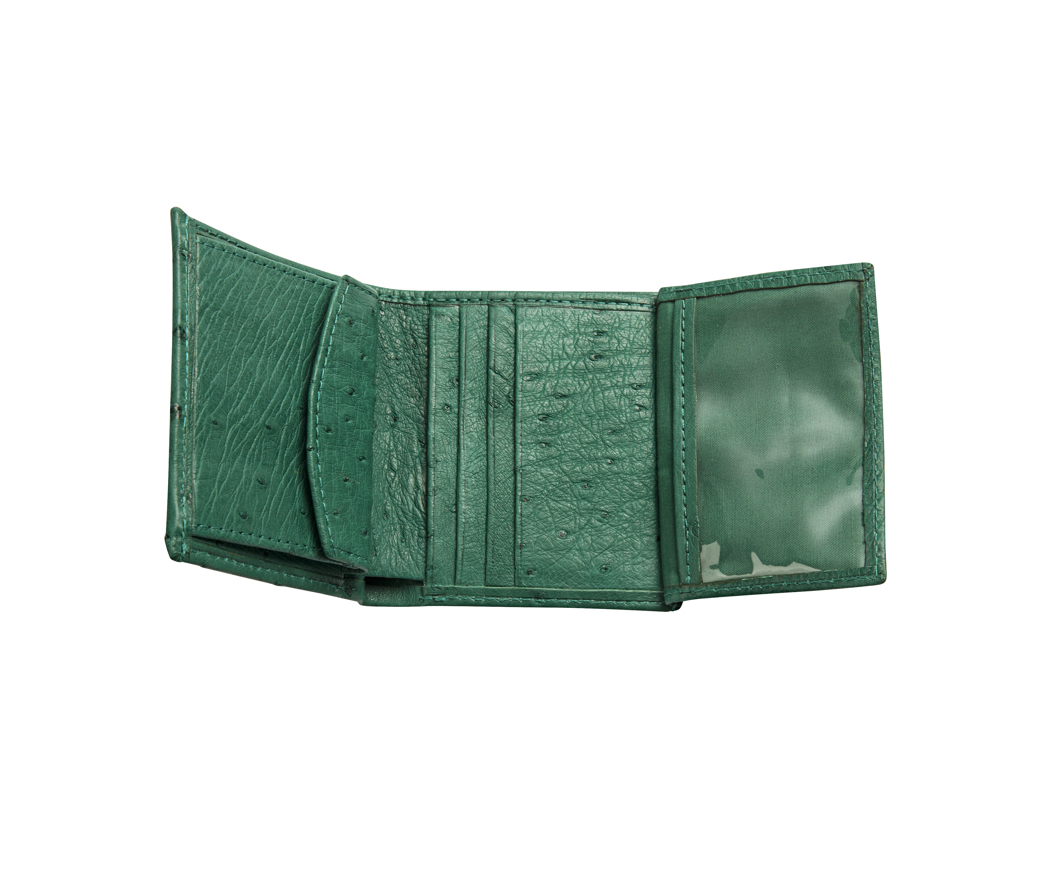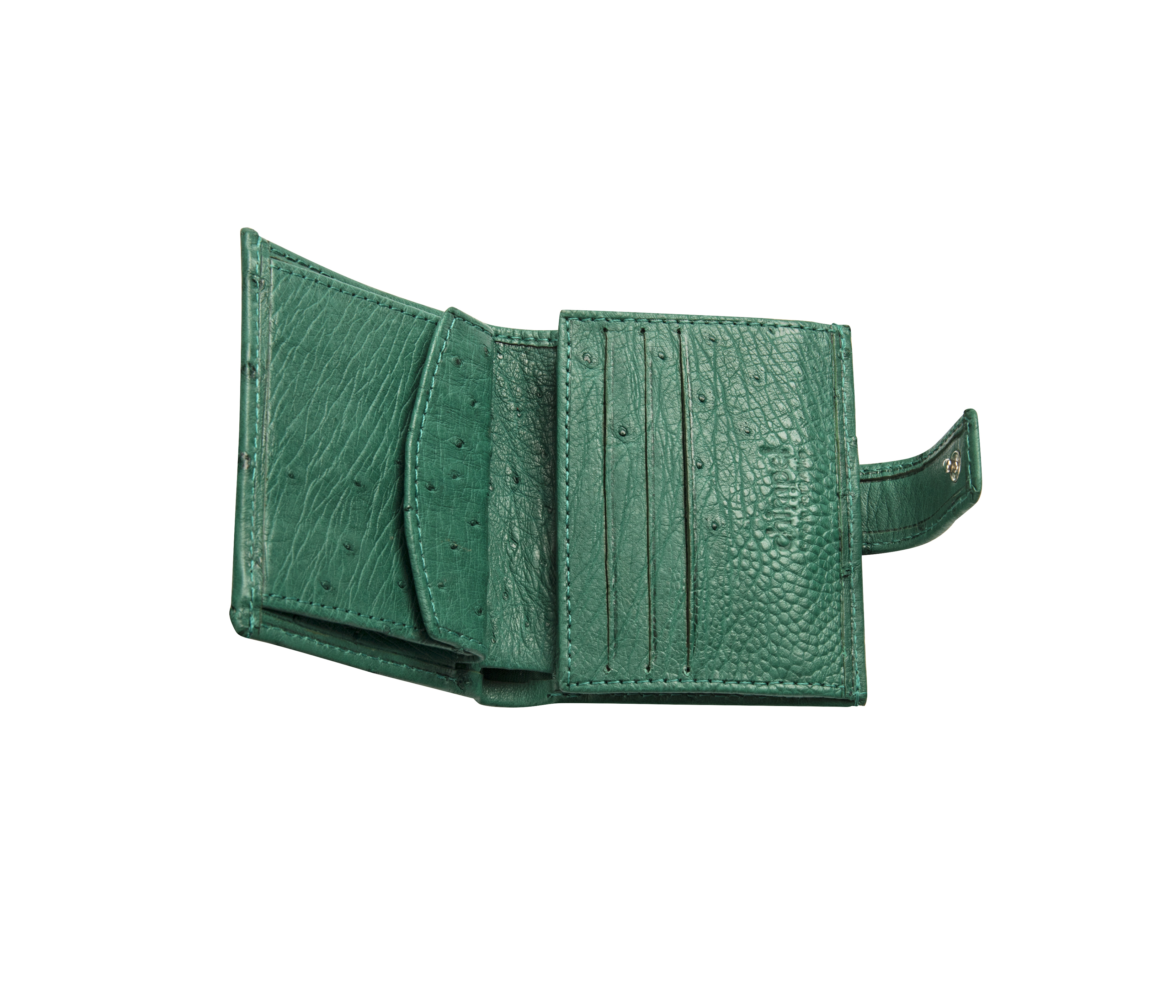 PriceZAR 1,600.00 Leather type: Ostrich Leather Details 6 Credit Card Slots 1 Transparent Slot 1 Coin Section 1 Note Section Made in South Africa Size Height: 10cm Width: 8.5cm Depth: 2cm